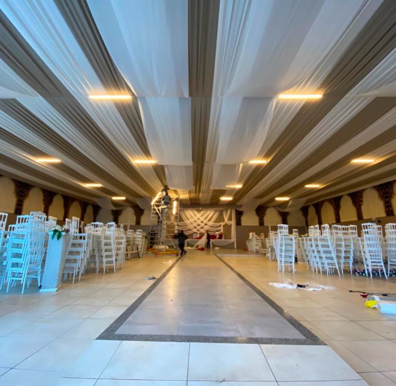 Düşler Kumaş & Dekorasyon; çadır kaplama, kumaş kaplama, zemin ve sahne uygulamaları başta olmak üzere, organizasyon ve etkinlik alanlarına estetik, konfor ve prestij kazandıran profesyonel çözümler sunar.